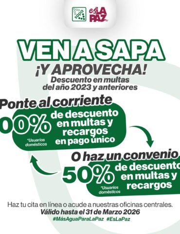 Últimos días para aprovechar el máximo descuento de OOMSAPAS La Paz en multas y recargos