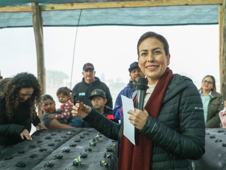 Durante su visita a la subdelegación de Puerto Chale, la alcaldesa de La Paz, Milena