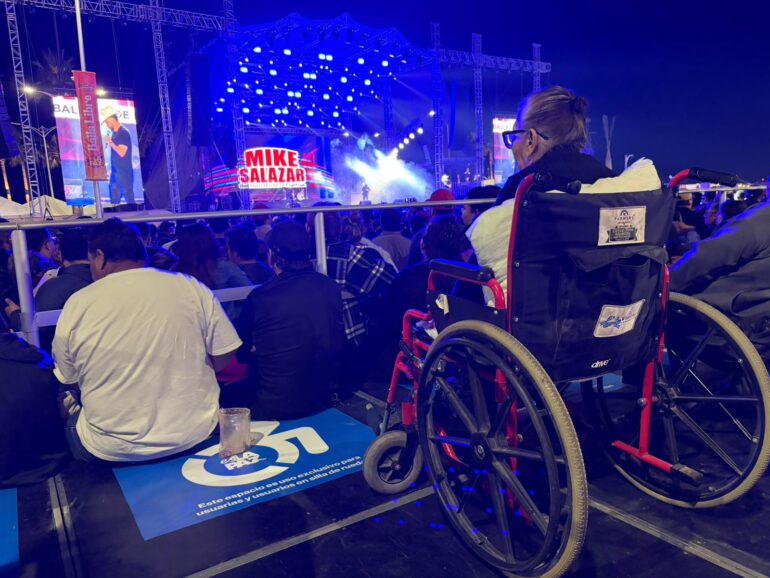 Asimismo, se otorgó acceso gratuito a la plataforma de ajuste razonable para visibilidad de personas usuarias de silla de ruedas, un templete ubicado frente al escenario principal del malecón que permitió una experiencia cómoda.