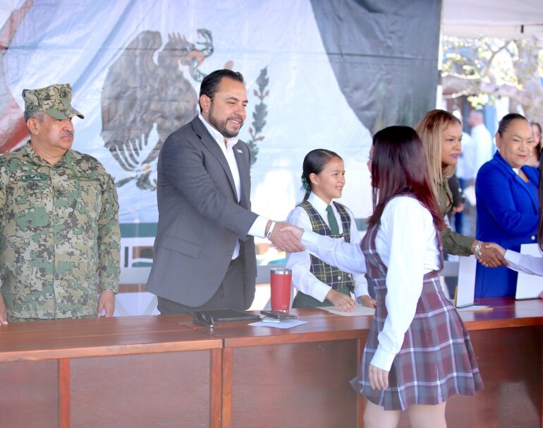 Para finalizar, se destaca que en el marco de la ceremonia de honores a la bandera el alcalde Christian Agúndez encabezó la premiación a escuelas ganadoras del pasado concurso de escoltas alusivo al Día de la Bandera, para lo cual estuvo acompañado de integrantes del H. Cabildo de Los Cabos, titulares de distintas dependencias municipales.